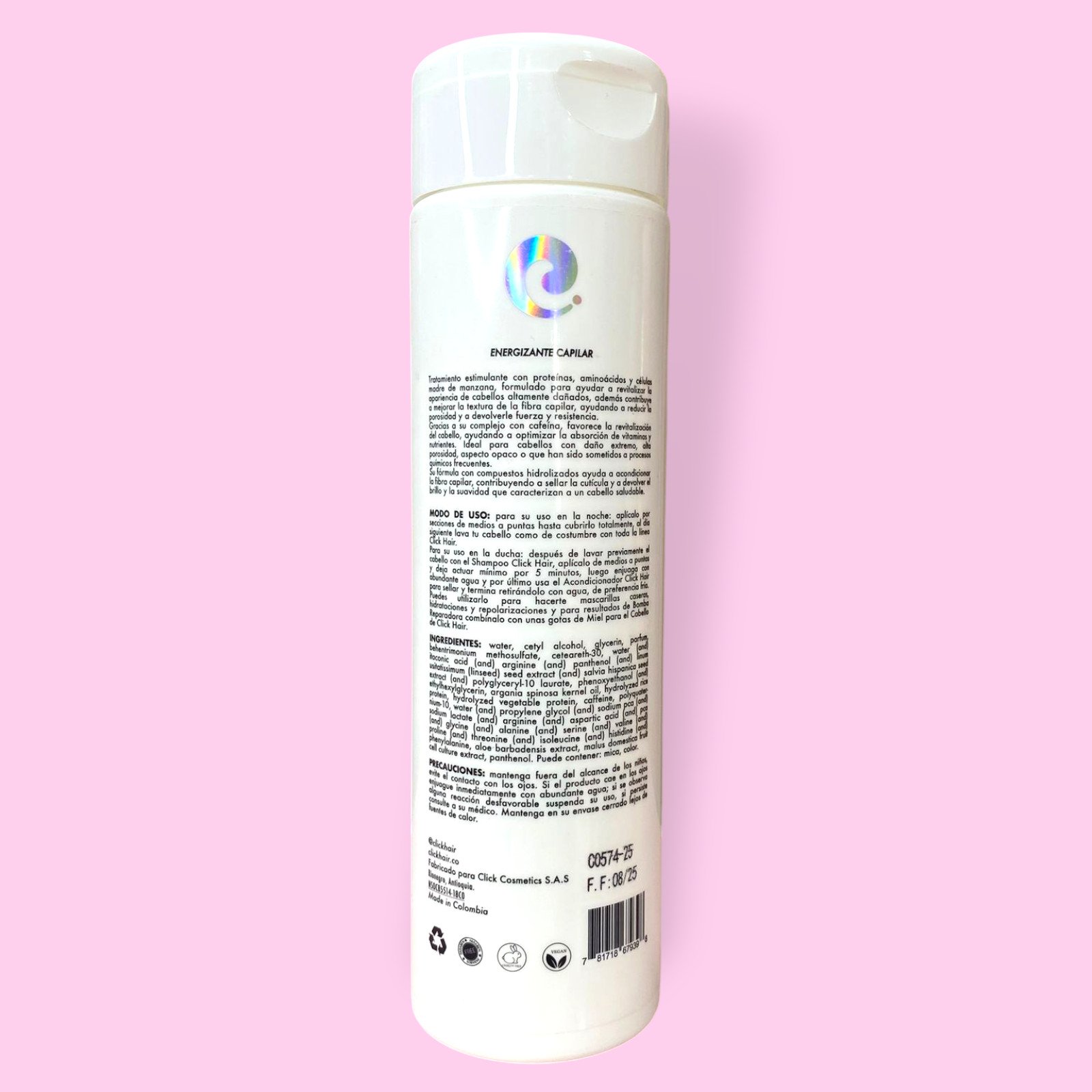 El Energizante Capilar Proteína para el Cabello Click Hair es un shot de reparación profunda, especialmente formulado para cabellos debilitados, porosos o expuestos a procesos químicos y térmicos. Actúa como un filler capilar, utilizando una combinación de Proteínas de Seda, Aminoácidos Esenciales y Aceite de Argán que trabajan en conjunto para rellenar la fibra y compactar la estructura interna. La inclusión de Cafeína y Células Madre revitaliza el folículo y potencia la reparación desde la raíz hasta la punta. Es la solución ideal para lograr el efecto de una Repolarización profesional en casa, sellando la humedad y garantizando una melena fuerte, lisa y con un espejo de brillo.