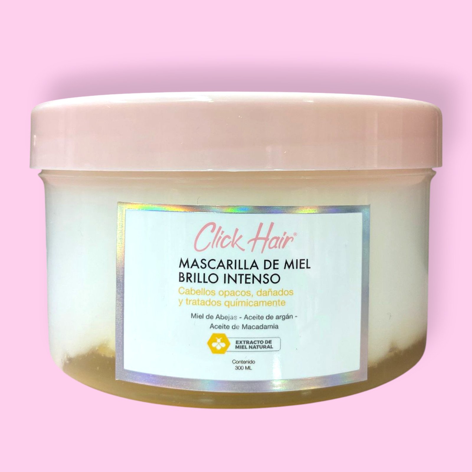 La Mascarilla de Miel Brillo Intenso Click Hair es la solución de rescate definitiva para cabellos que necesitan un impulso de vitalidad y reparación. Diseñada para cabellos opacos, dañados y tratados químicamente, su fórmula de alto rendimiento está cargada con Miel de Abejas, Aceite de Argán y Aceite de Macadamia. La Miel actúa como un potente humectante natural que retiene la humedad esencial, mientras que los aceites nutren y reconstruyen la estructura dañada. Esta mascarilla sella intensamente la cutícula, lo que no solo elimina la porosidad y el frizz, sino que también optimiza la superficie para un brillo intenso que rivaliza con el de un tratamiento de salón.