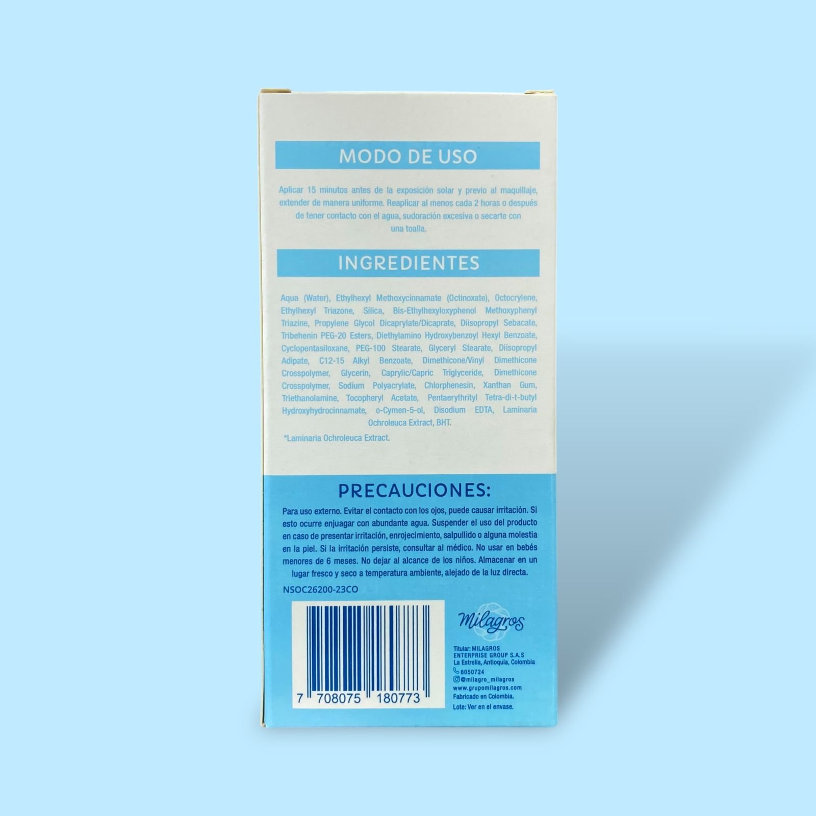 - Aplicar 15 minutos antes de la exposición solar y previo al maquillaje (extender de manera uniforme).